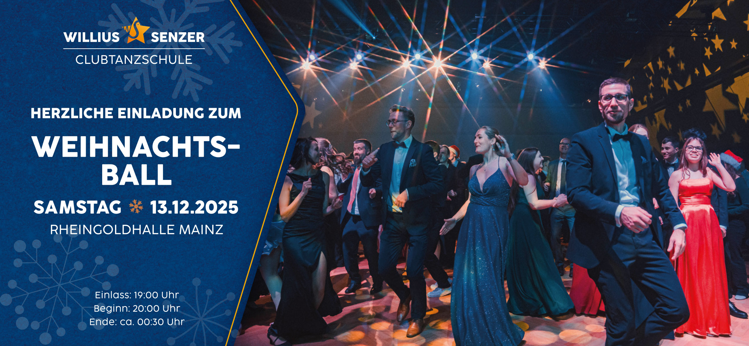 Wir laden Sie, Ihre Familie, Freunde, Bekannte herzlich zu unserem Festlichen Weihnachtsball am Samstag, 13. Dezember 2025 in der Rheingoldhalle Mainz ein.